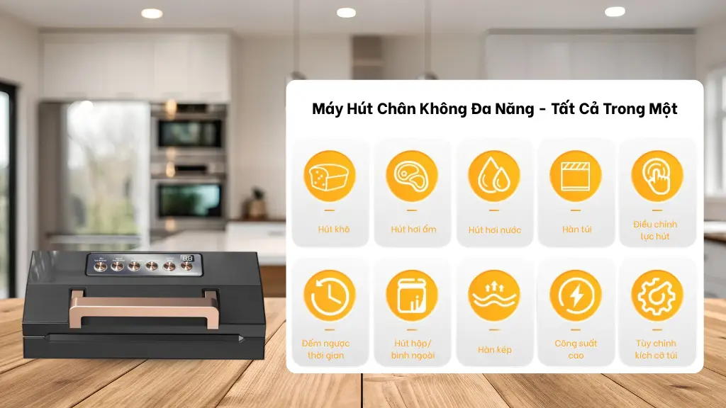 Điểm chị Phương thích nhất chính là công nghệ hàn kép kín tuyệt đối, giúp đồ ăn được bảo quản lâu gấp nhiều lần mà không bị ám mùi. Cộng thêm khay đựng nước tháo rời giúp máy luôn sạch sẽ, màn hình số dễ theo dõicổng phụ kiện mở rộng công năng, việc hút chân không giờ chỉ mất vài giây mà hiệu quả vượt xa mong đợi.