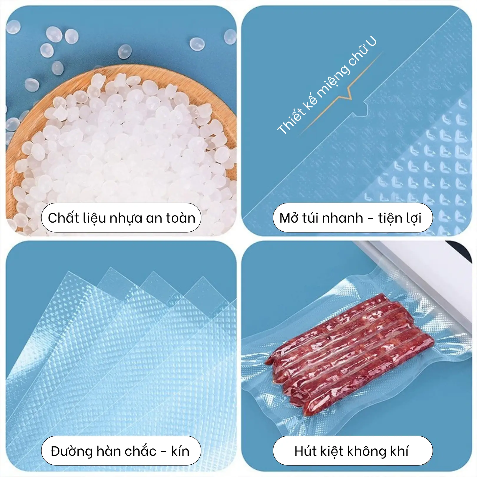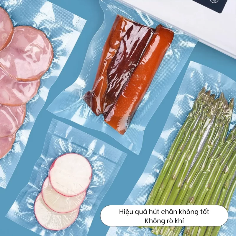 Nhờ khả năng hút kín hoàn toàn và chống ẩm tuyệt đối, túi hút chân không một mặt nhám giúp thực phẩm tươi ngon lâu gấp 3–5 lần so với cách bảo quản thông thường.