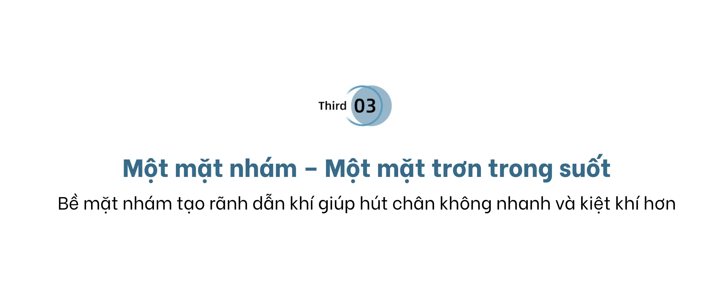 Thiết kế 1 mặt nhám – 1 mặt trơn giúp hút kiệt không khí dễ dàng