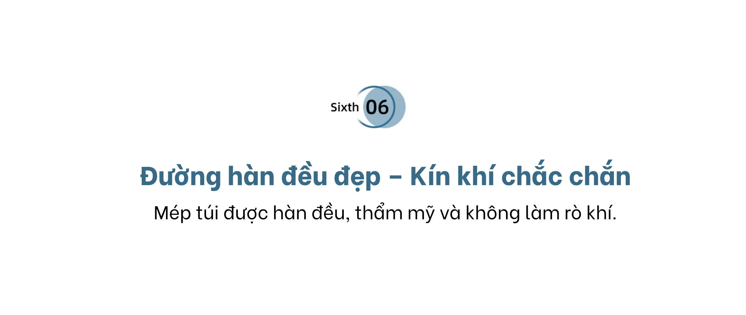 Túi Boomeraa được sản xuất với độ dày đồng đều, đảm bảo chịu được lực hút mạnh mà không bị rách hoặc xì khí. Đường hàn ép kín chắc chắn, không bong tróc kể cả khi hút thực phẩm nhiều nước hay đông lạnh.